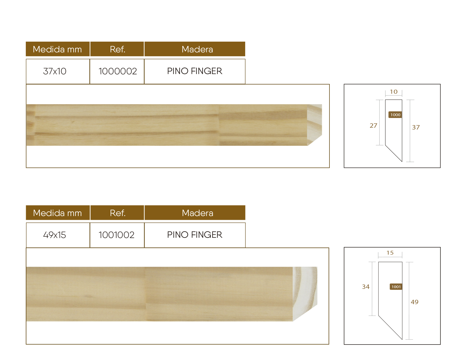 2 medidas de bastidor de 37x10mm y 49x15mm.
