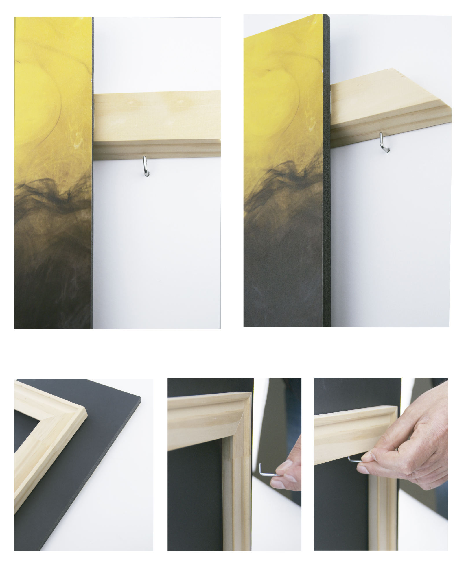 Bastidor de pino finger especialmente diseñado para colgar fácilmente en la pared cualquier tipo de cuadro, bastidor, D-Fix, Cartón Pluma u otros materiales.