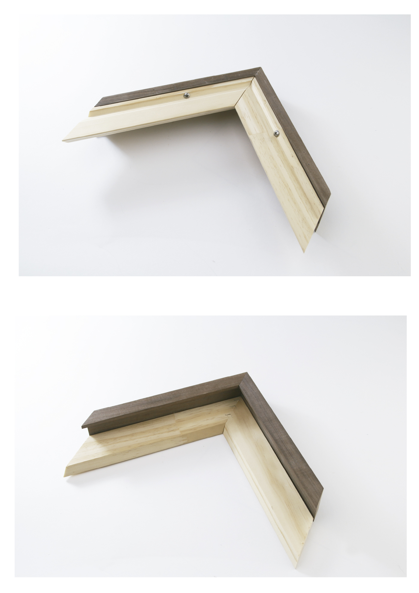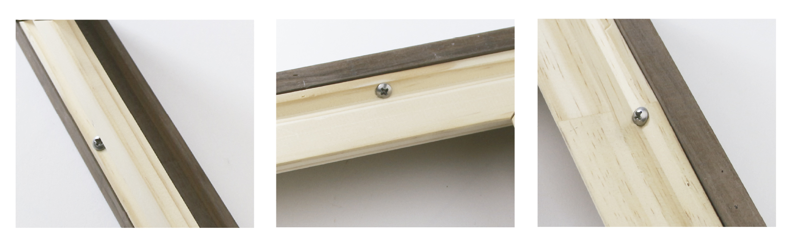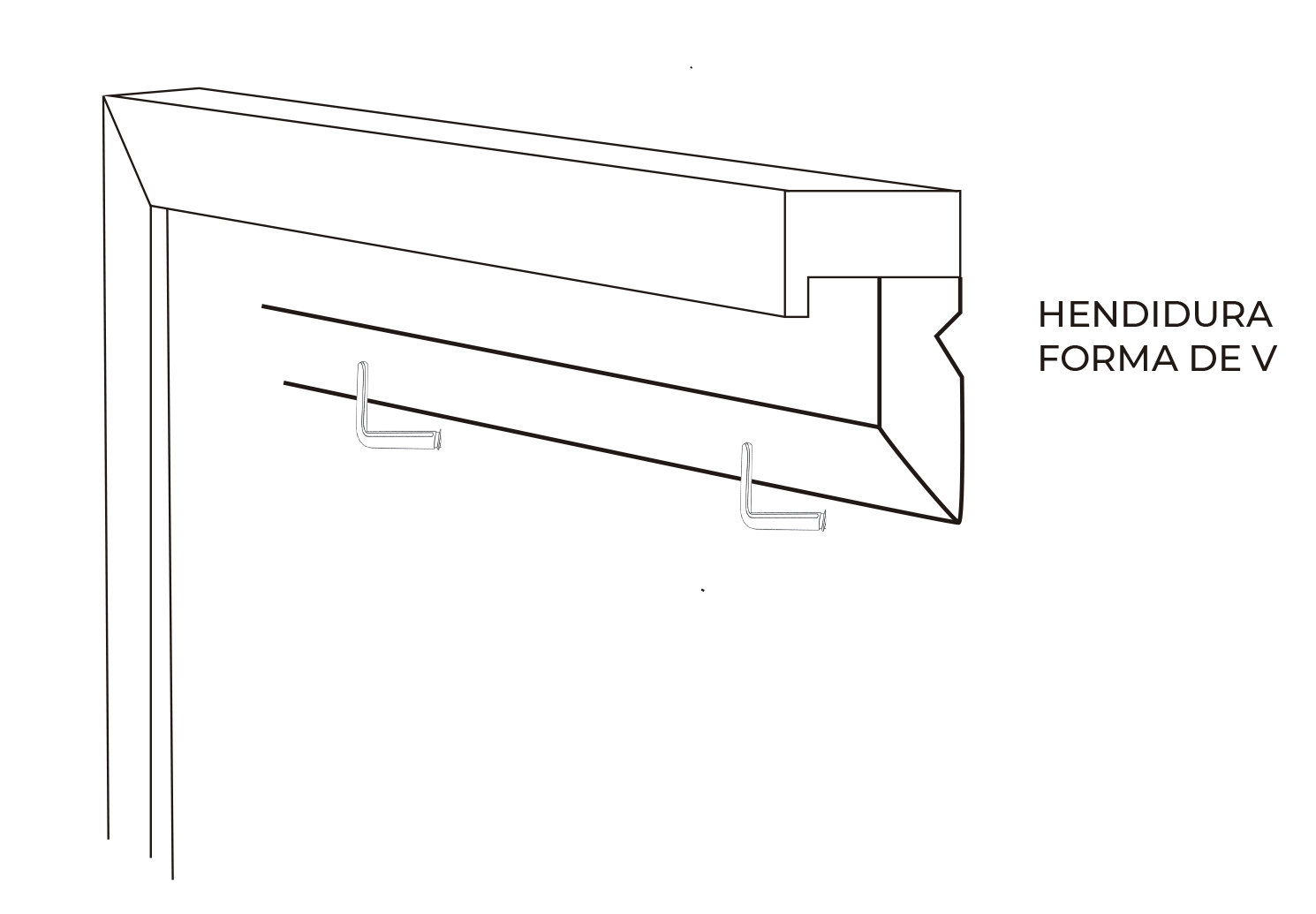 La hendidura en forma de “V” nos permite fijar el bastidor a la moldura con un tornillo.
