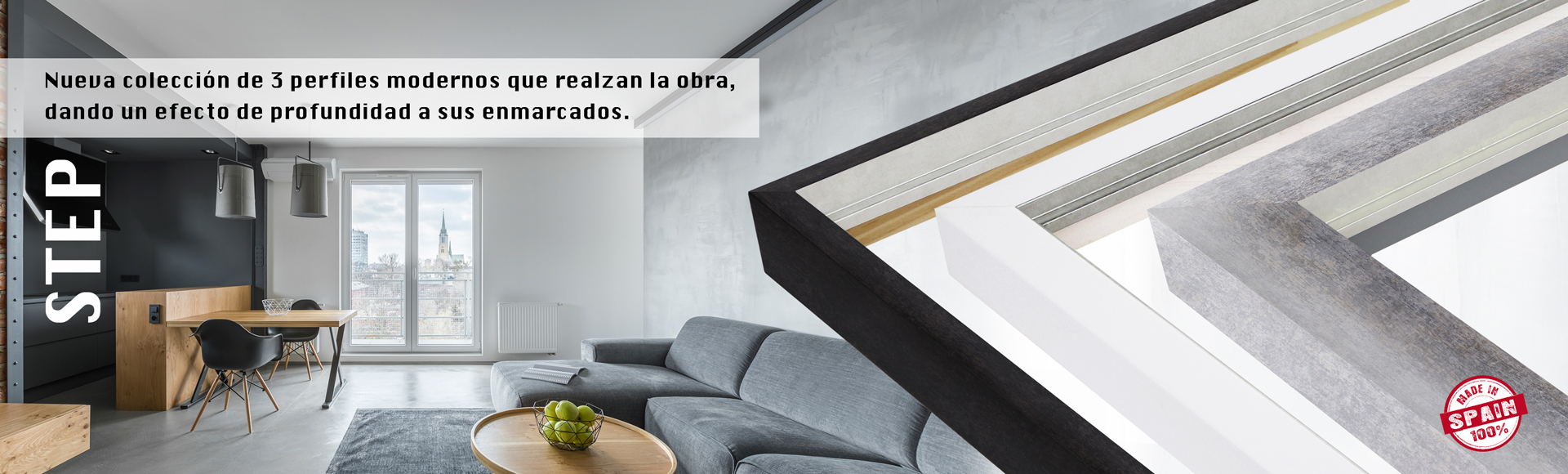 Novedades en Molduras para cuadros. Descubre nuestra nueva colección Step de molduras fabricada íntegramente en Intermol molduras para cuadros. Una colección de 3 perfiles modernos que realzan la obra, dando un efecto de profundidad a sus enmarcados.