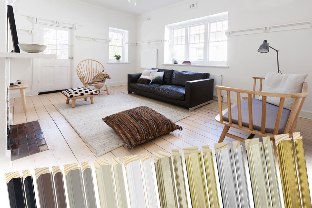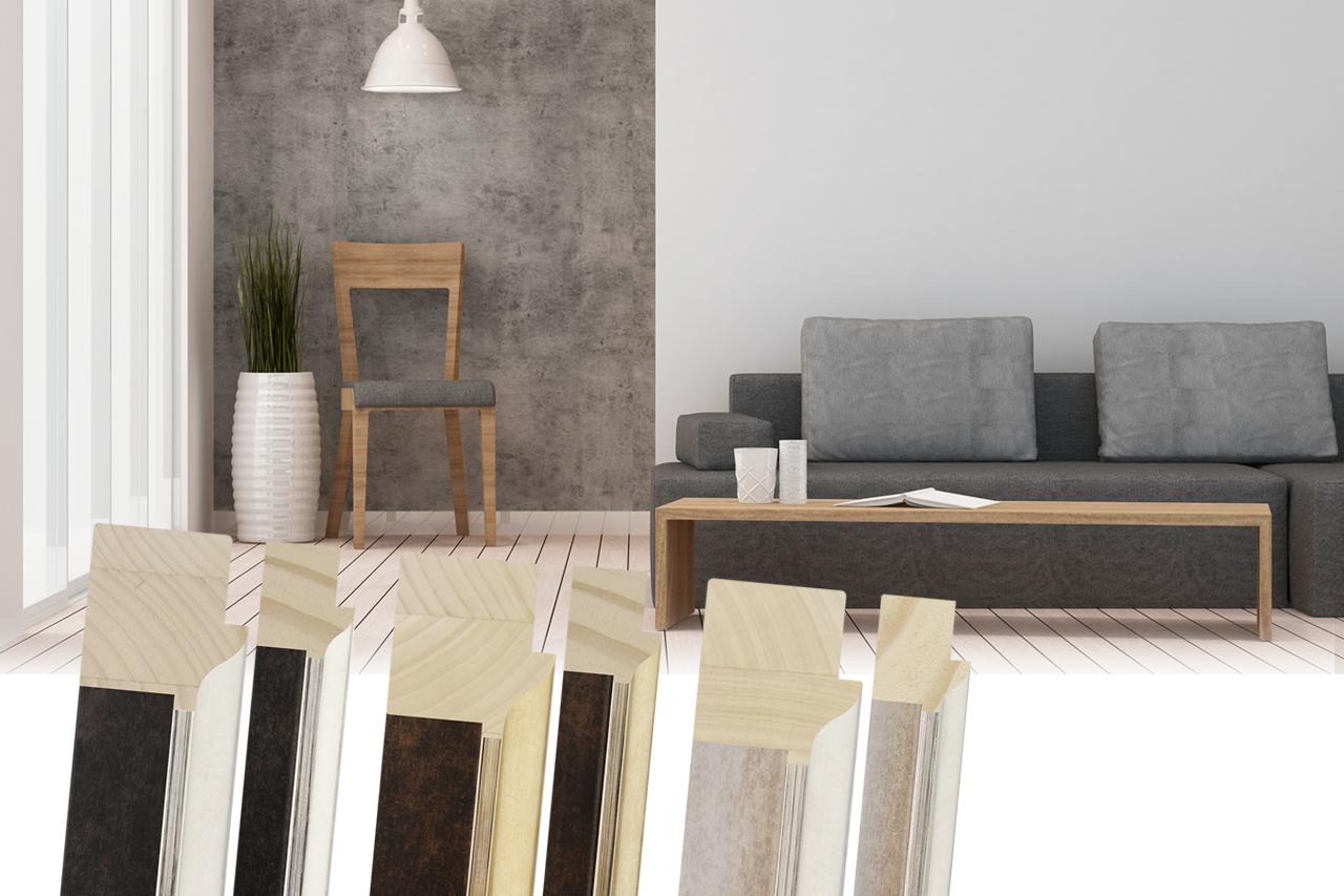 2 tamaños disponibles de una moldura de uso diario como entrecalle o también para un enmarcado tradicional.