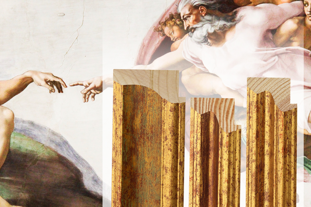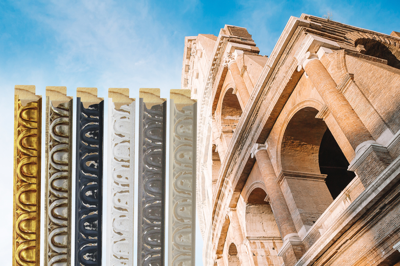 Una colección de dos molduras grabadas de inspiración clásica, con decorados totalmente actuales.