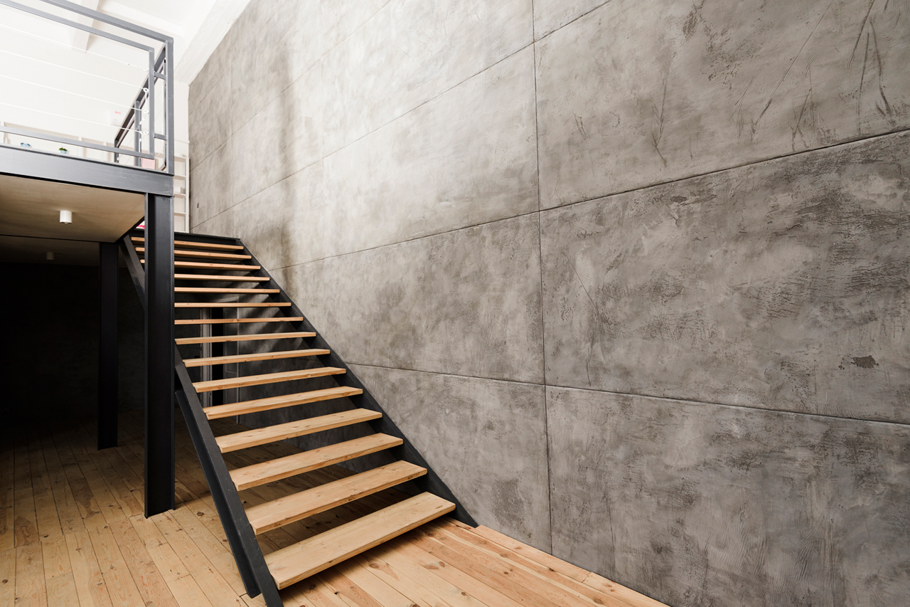 Novedosos decorados de imitación piedra sobre 3 modernos perfiles de líneas rectas.